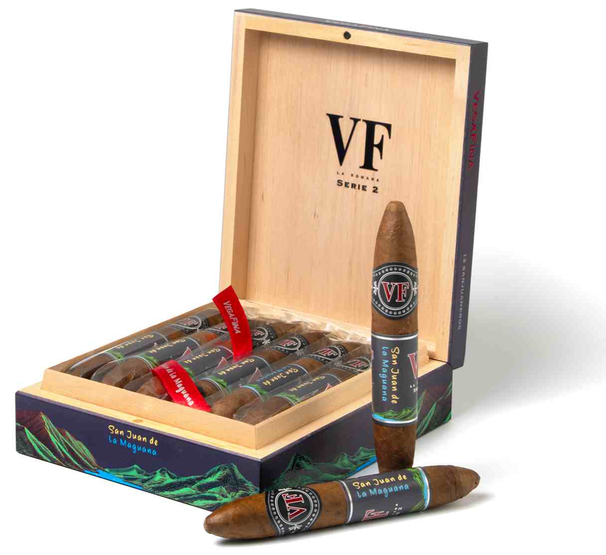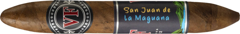 这款名为“唯佳 Serie 2 圣胡安”的雪茄,采用别具一格的“圣胡安罗”造型,实为环径52、长度5¾英寸的双尖鱼雷式雪茄。它是一款纯粹的“多米尼加之烟”,烟叶全部源自多米尼加共和国。据其经销商Tabacalera S.L.U.描述,该雪茄风味强度为中等偏浓郁,蕴含着木质香、干果、可可、香料的气息,并带有甘甜的尾韵。其名称致敬了位于多米尼加西部、圣胡安河谷心脏地带的圣胡安-德拉马瓜纳城。这款雪茄由位于多米尼加东部的加西亚烟厂匠心打造。